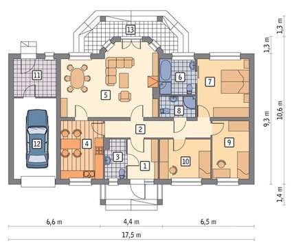 Проект одноэтажного дома с большим крыльцом 4M6334