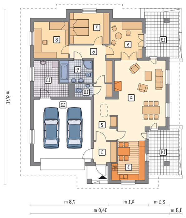 Проект одноэтажного дома с деревянными архитектурными элементами 4M6214a