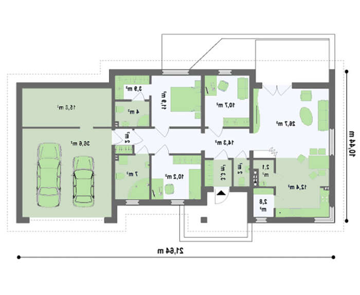 проект в зеркальном отображении позволит органично вписать дом в окружающий ландшафт.