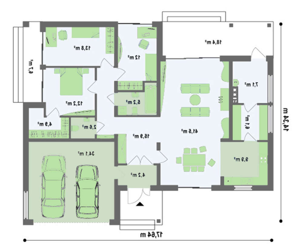 проект в зеркальном отображении позволит органично вписать дом в окружающий ландшафт.