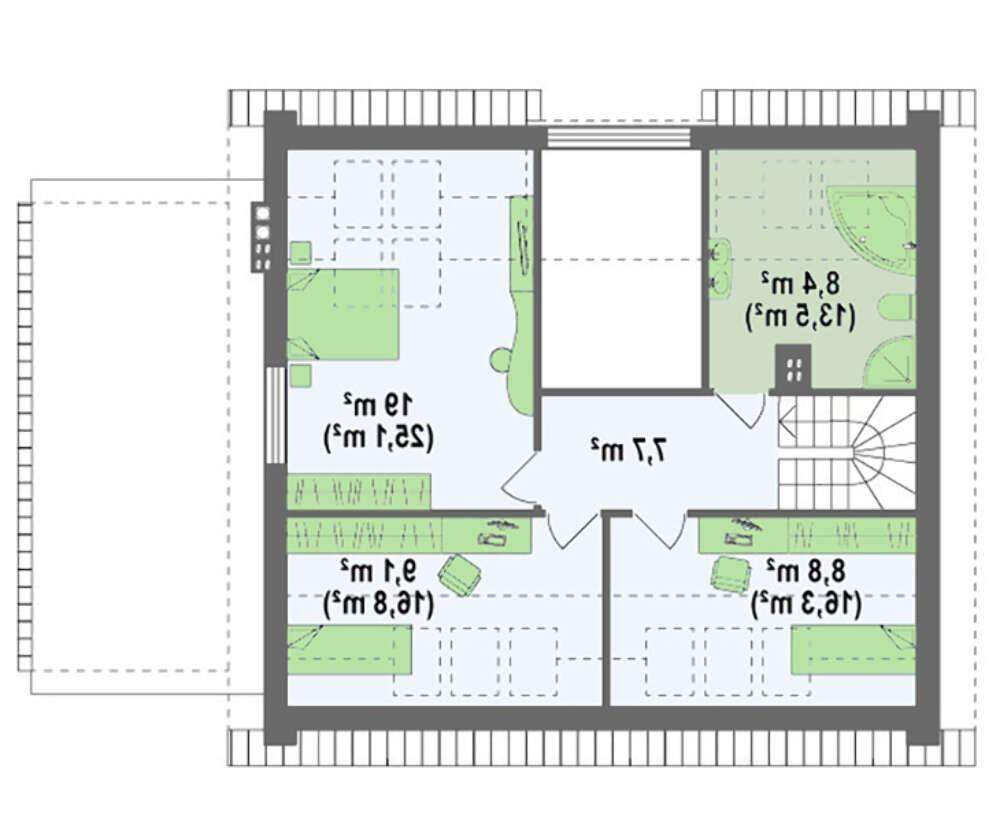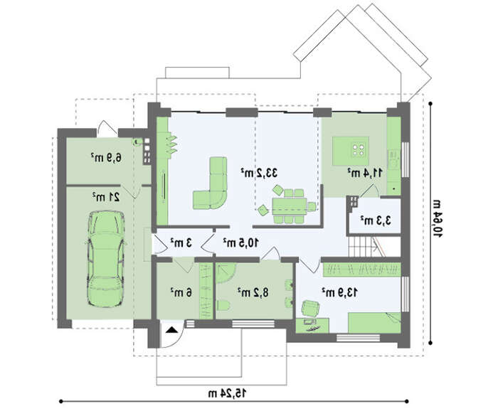 проект в зеркальном отображении позволит органично вписать дом в окружающий ландшафт.