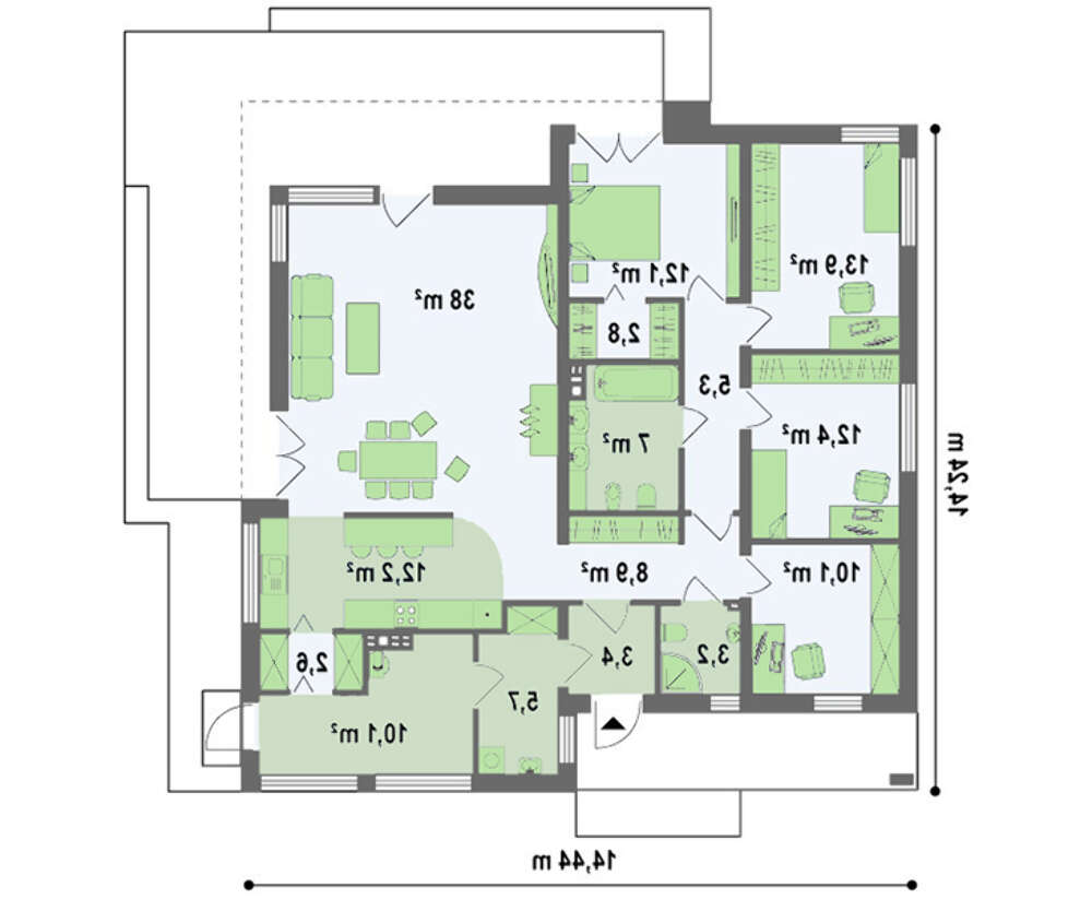 проект в зеркальном отображении позволит органично вписать дом в окружающий ландшафт.