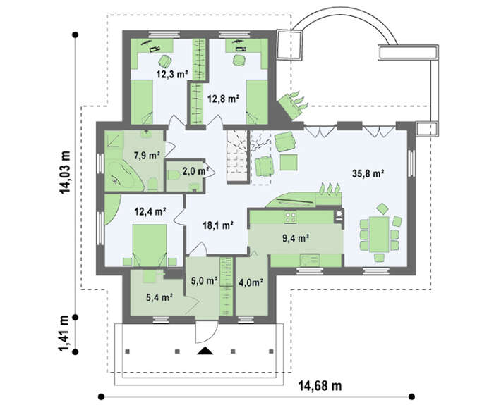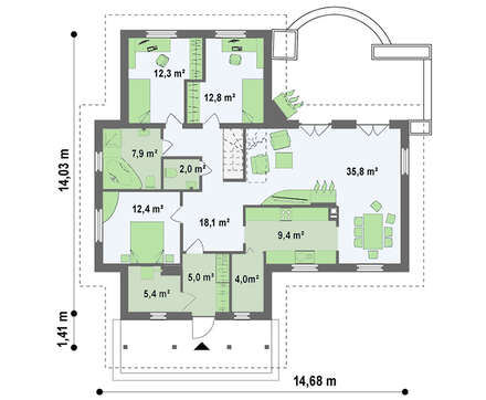 • 4M454 Проект одноэтажного коттеджа с помещением для мансарды
