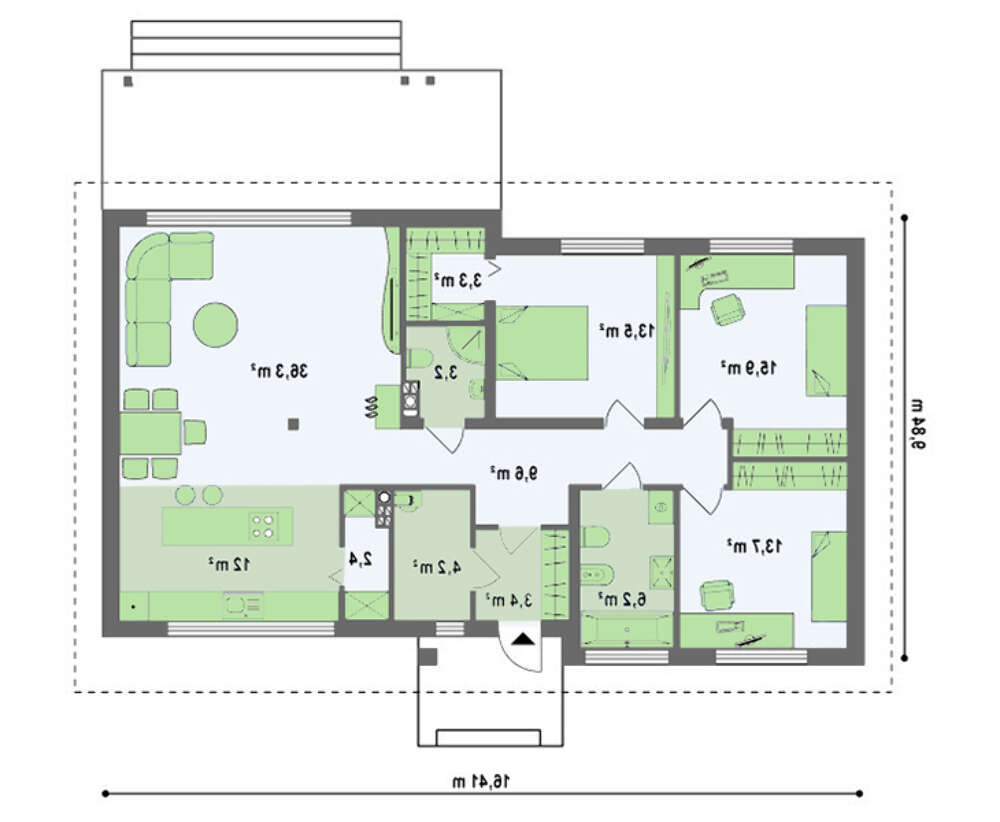 проект в зеркальном отображении позволит органично вписать дом в окружающий ландшафт.