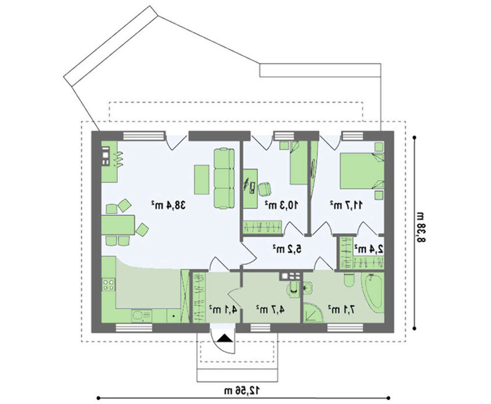• 4M390 Проект одноэтажного экономичного и функционального коттеджа