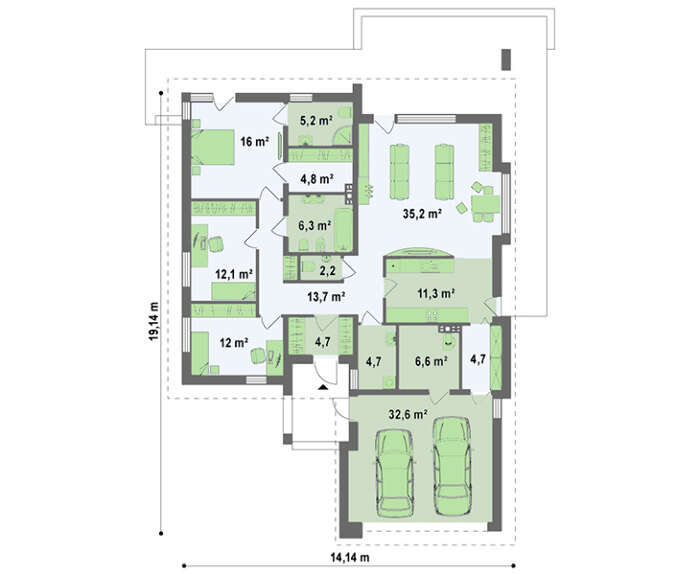 Проект одноэтажного классического дома с гаражом и мансардой 4M178