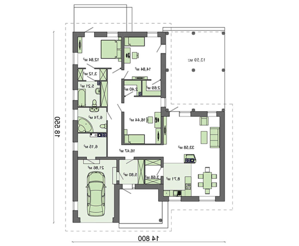 Проект одноэтажного коттеджа с большой террасой 4M322