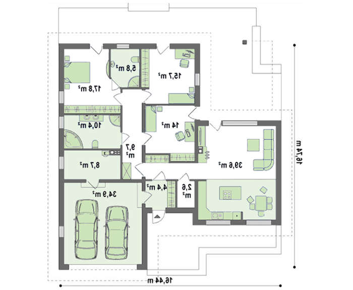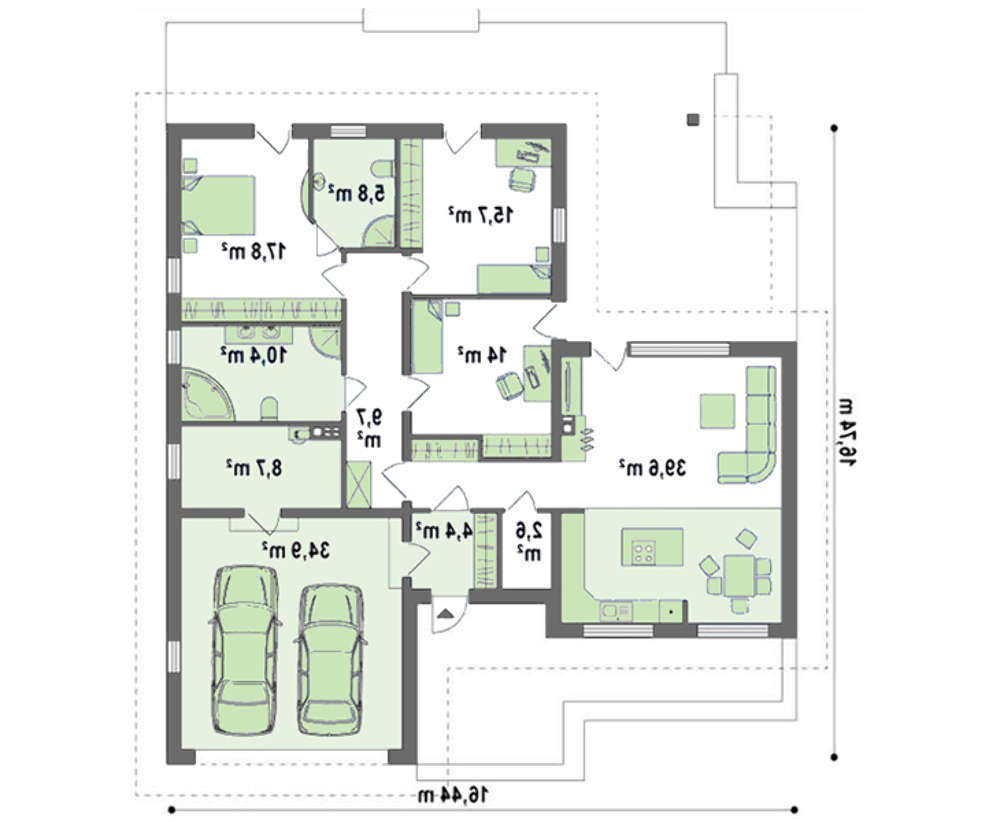 • 4M330 Проект одноэтажного коттеджа с чердаком и угловой террасой