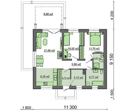 Проект одноэтажного коттеджа в классическом стиле 4M378