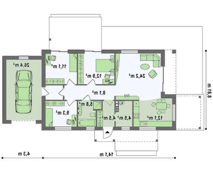 проект в зеркальном отображении позволит органично вписать дом в окружающий ландшафт.