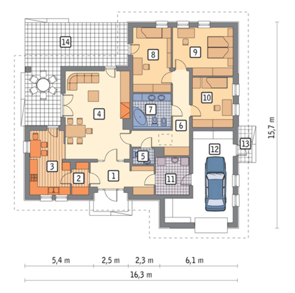 Проект одноэтажного особняка декорированного натуральным камнем 4M6194