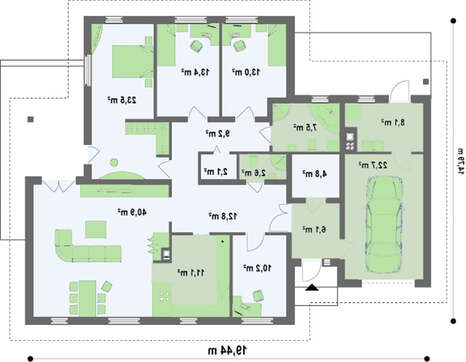 проект в зеркальном отображении позволит органично вписать дом в окружающий ландшафт.