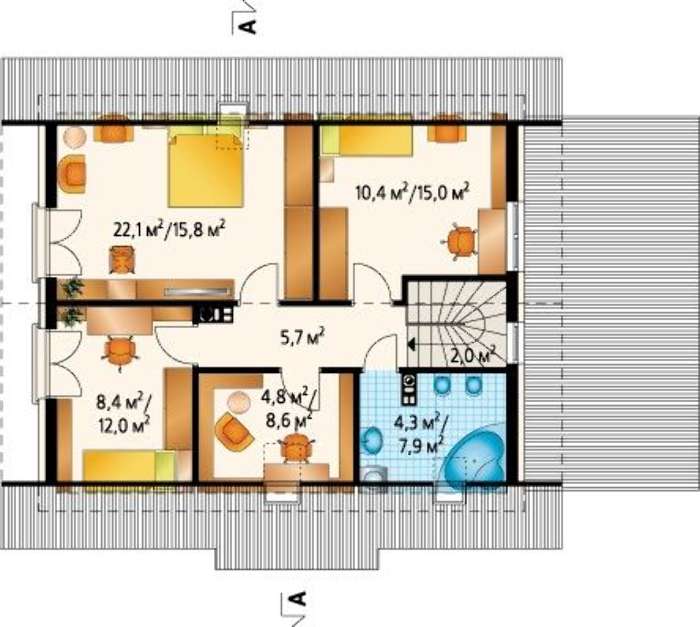 Проект оригинального коттеджа с двумя этажами 4M3687a