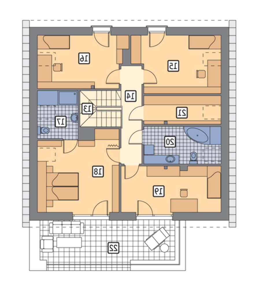 Проект особняка с большой террасой на втором этаже 4M6156