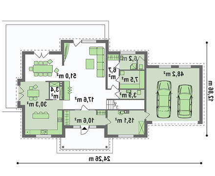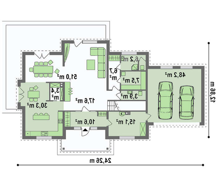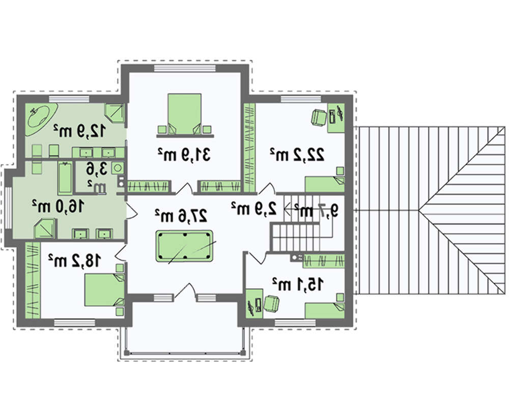 проект в зеркальном отображении позволит органично вписать дом в окружающий ландшафт.