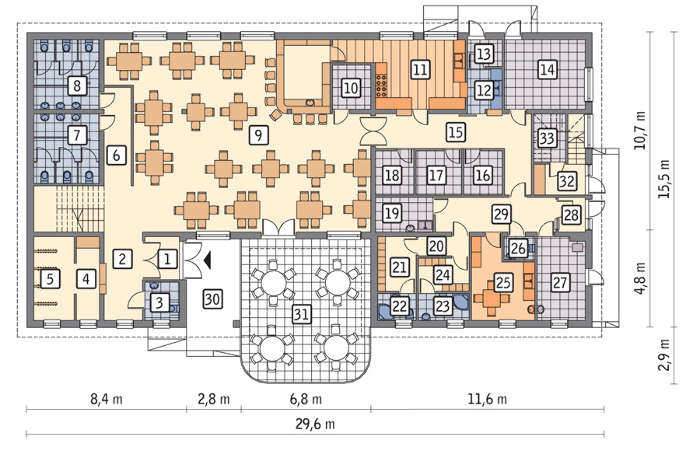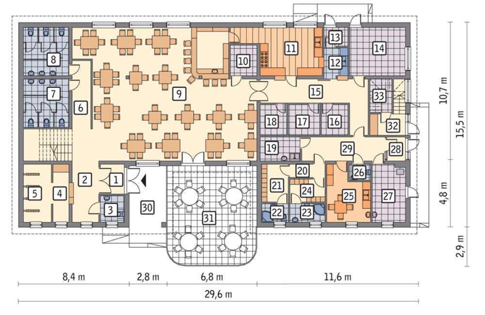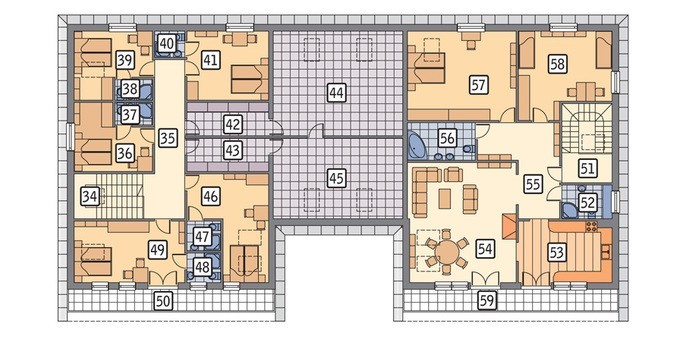 Проект содержит три раздела – Архитектурный, Конструктивный и Инженерный: водоснабжение, отопление, вентиляция, канализация, электроснабжение (приобретается за дополнительную плату) + Пояснительная записка.