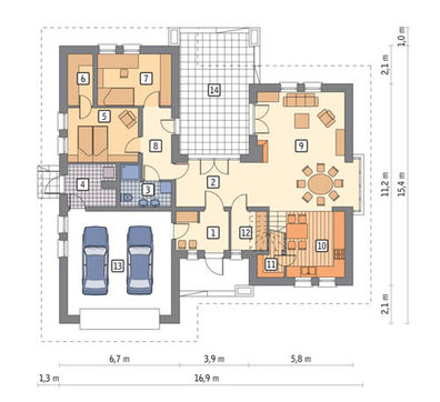 Архитектурный паспорт содержит самые общие сведения о проекте частного дома. Здесь вы не найдете подробных описаний. Вся более детальная информация дана в архитектурном и конструктивном разделах проекта. В паспорте же указаны только основные размеры и высоты. Также в нем отражены технико-экономические показатели будущего строения.