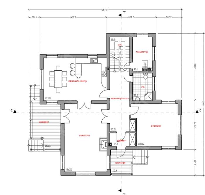 проект в зеркальном отображении позволит органично вписать дом в окружающий ландшафт.
