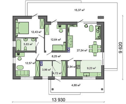 Фото реализации одноэтажного коттеджа
