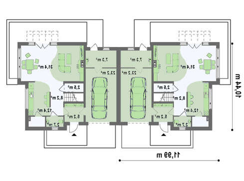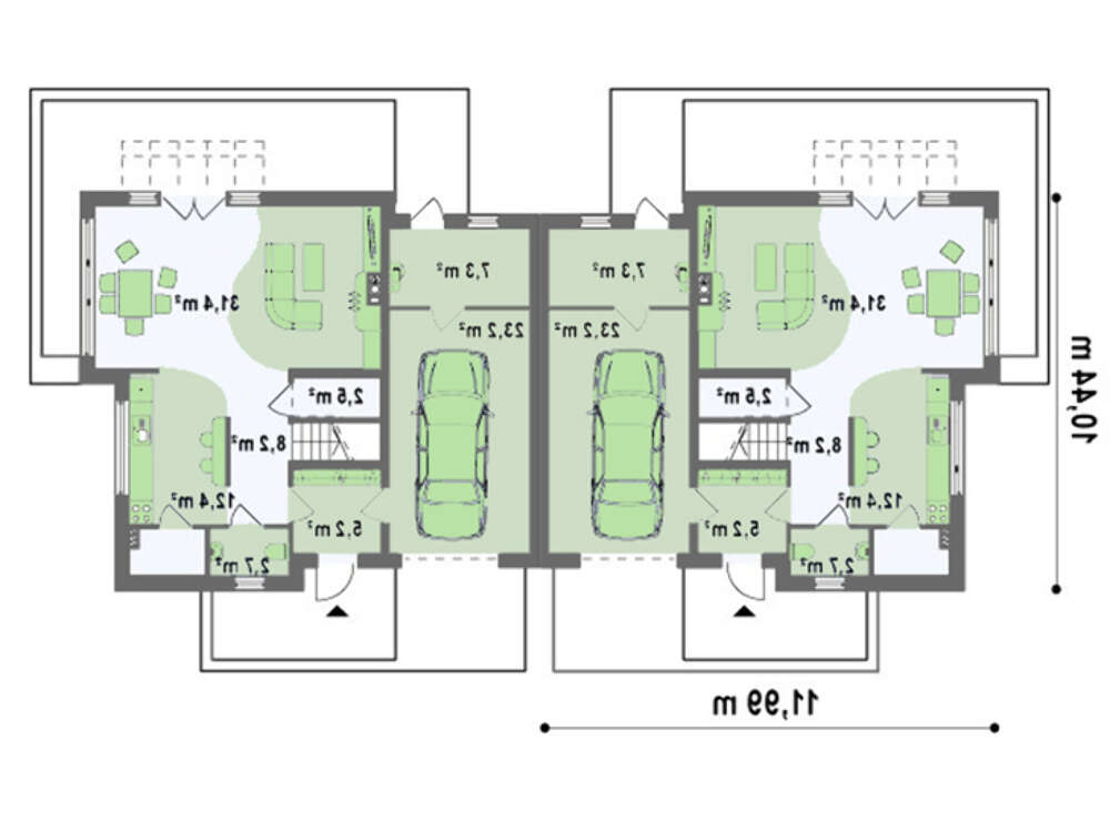 • 4M554 Проект просторного коттеджа на 2 семьи с боковым гаражом