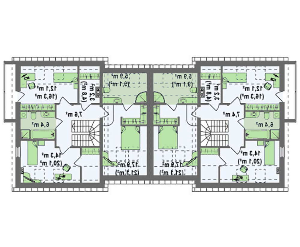 Проект просторного дома да 2 семьи с боковым гаражом | DOM4M Россия | Компания ДОМ4М в России