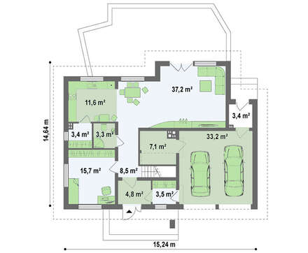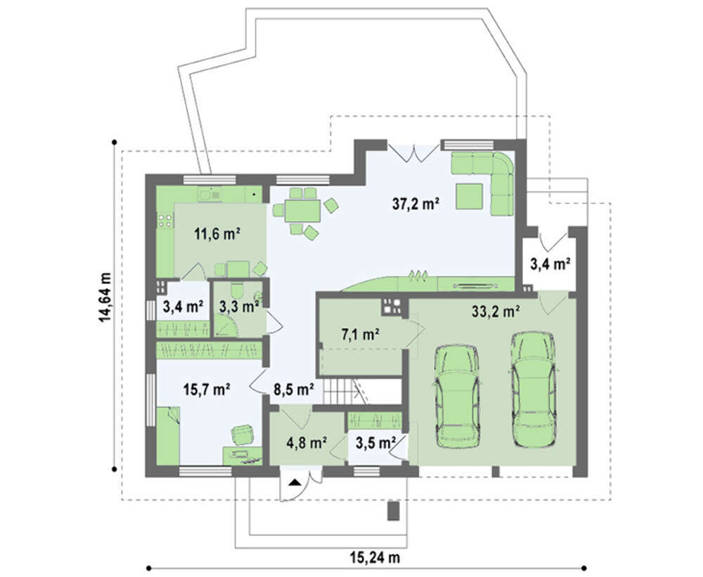 Проект просторного коттеджа с гаражом для двух авто 4M312