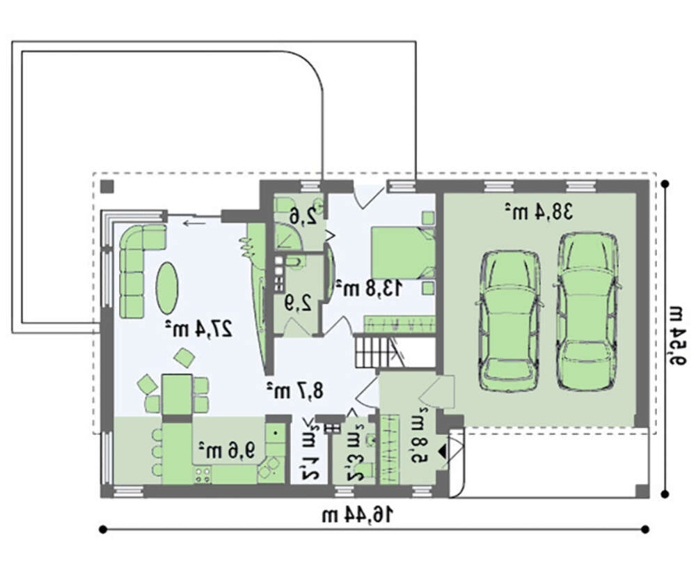 Угол наклона кровли:38° / 3 °