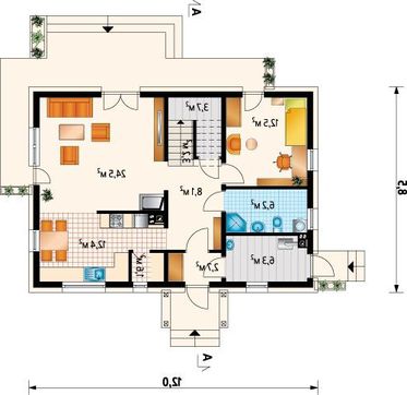 проект в зеркальном отображении позволит органично вписать дом в окружающий ландшафт.