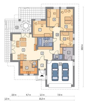 Проект содержит три раздела – АрхитектурныйКонструктивный и Инженерный: водоснабжение, отопление, вентиляция, канализация, электроснабжение (приобретается за дополнительную плату) + Пояснительная записка.