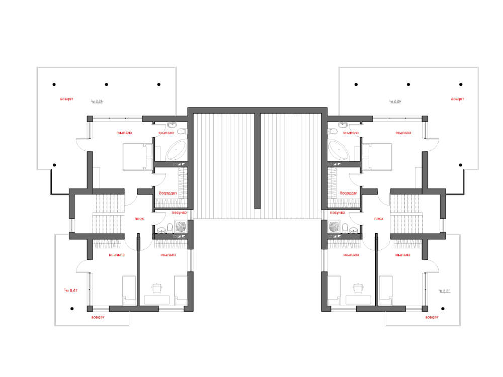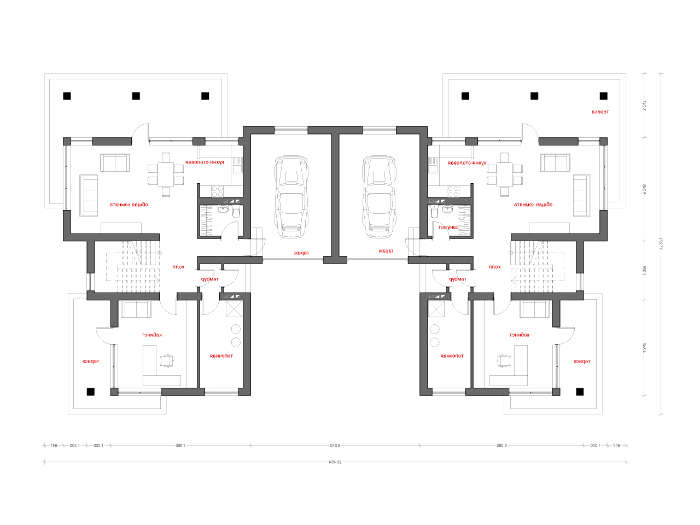• 4M805 Проект современного дома на две семьи с плоской крышей