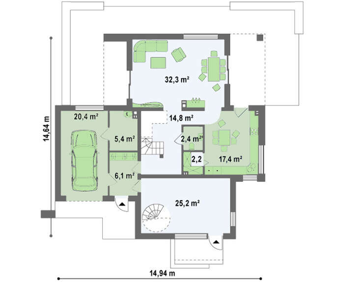Проект содержит три раздела – АрхитектурныйКонструктивный и Инженерный: водоснабжение, отопление, вентиляция, канализация, электроснабжение (приобретается за дополнительную плату) + Пояснительная записка.