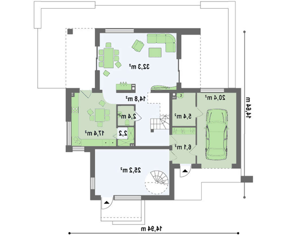 проект в зеркальном отображении позволит органично вписать дом в окружающий ландшафт.