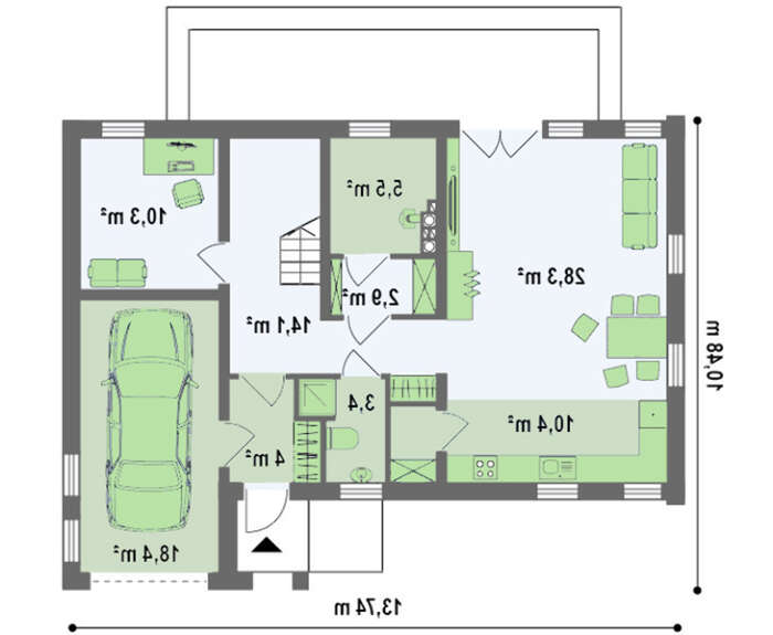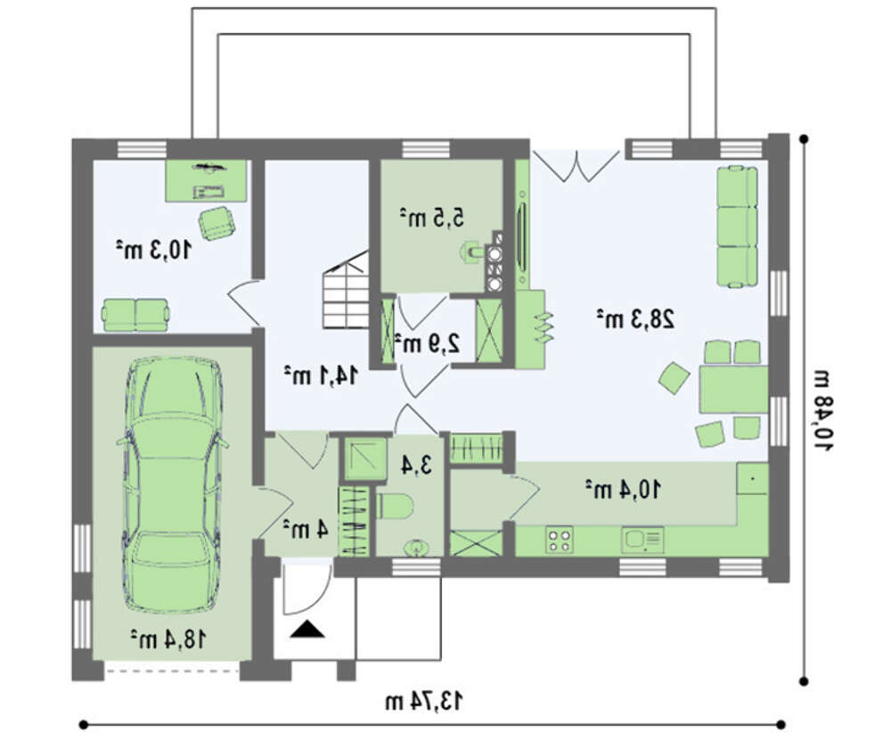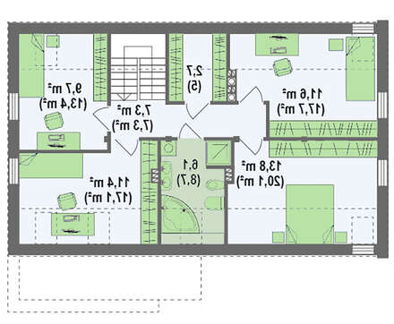 проект в зеркальном отображении позволит органично вписать дом в окружающий ландшафт.