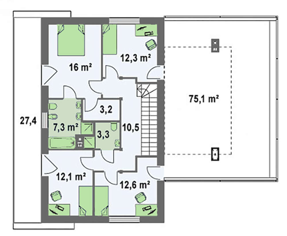 Проект 4M638 создан для тех, кому важен комфорт и практичность, кто не будет попусту тратить свое время и силы, кто имеет активную жизнь и оптимистичный характер. В этом доме очень правильно организовано пространство, для того, что бы каждый уголок был задействован с пользой. Нет лишних стен и перегородок. Белый фасад в сочетании с гаражом из светло-серого камня и большой террасой над гаражом, создают ощущение праздника и роскоши. Гармонично смотрится балкон – еще одно место для принятия «солнечных ванн». Большие окна и много белого цвета формируют атмосферу спокойствия и позитива.