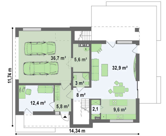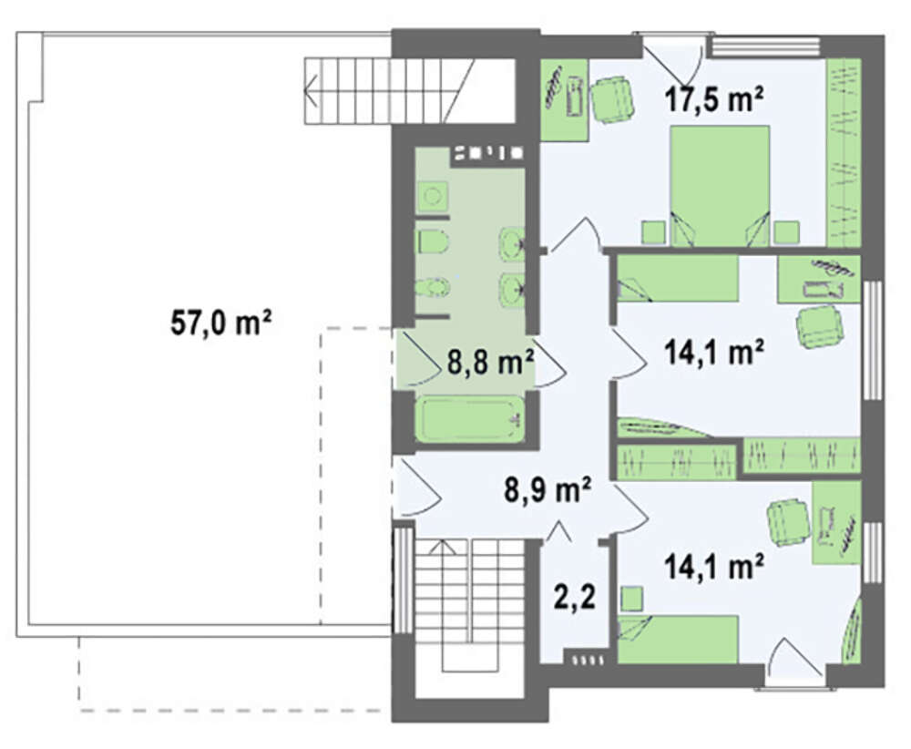 • 4M682 Проект современного дома с террасой и гаражом для 2 авто