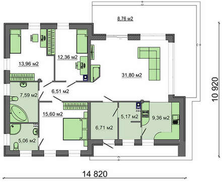 Проект содержит три раздела – АрхитектурныйКонструктивный и Инженерный: водоснабжение, отопление, вентиляция, канализация, электроснабжение (приобретается за дополнительную плату) + Пояснительная записка.