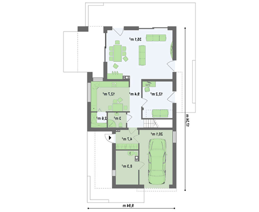проект в зеркальном отображении позволит органично вписать дом в окружающий ландшафт.