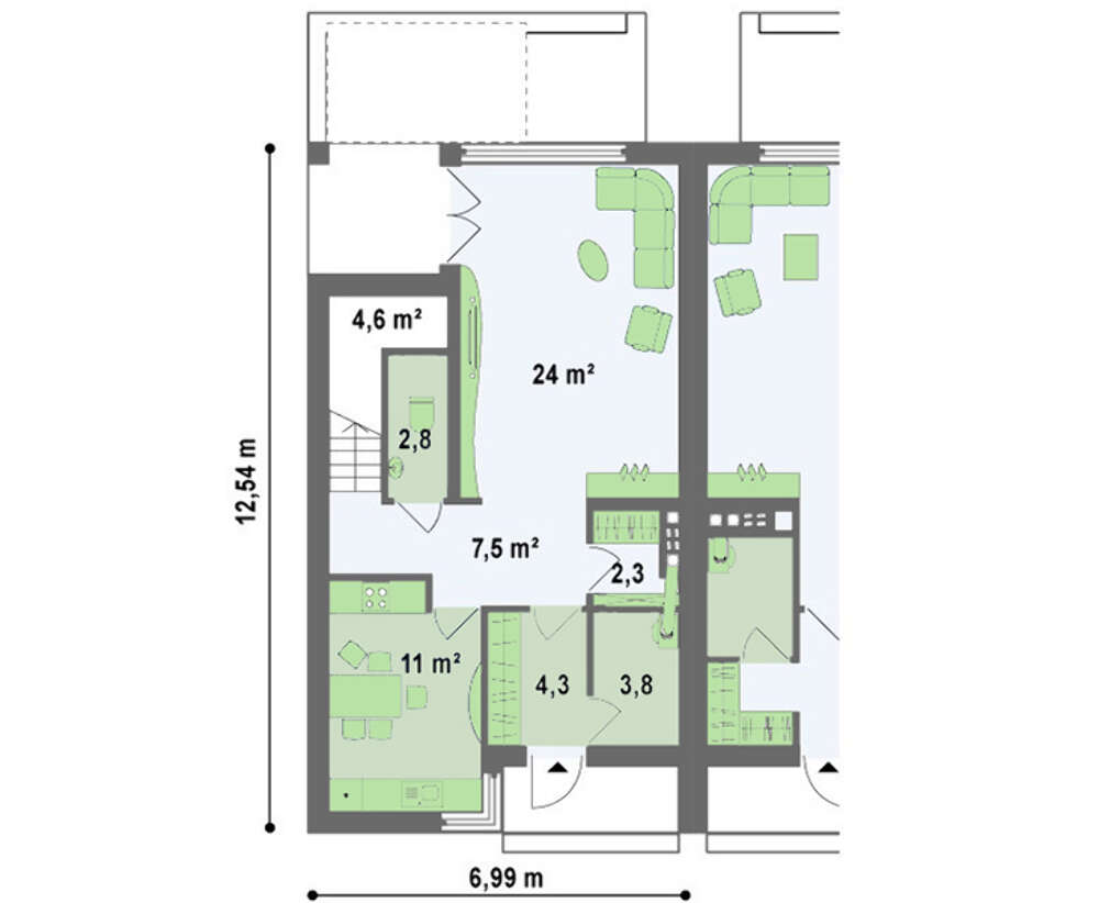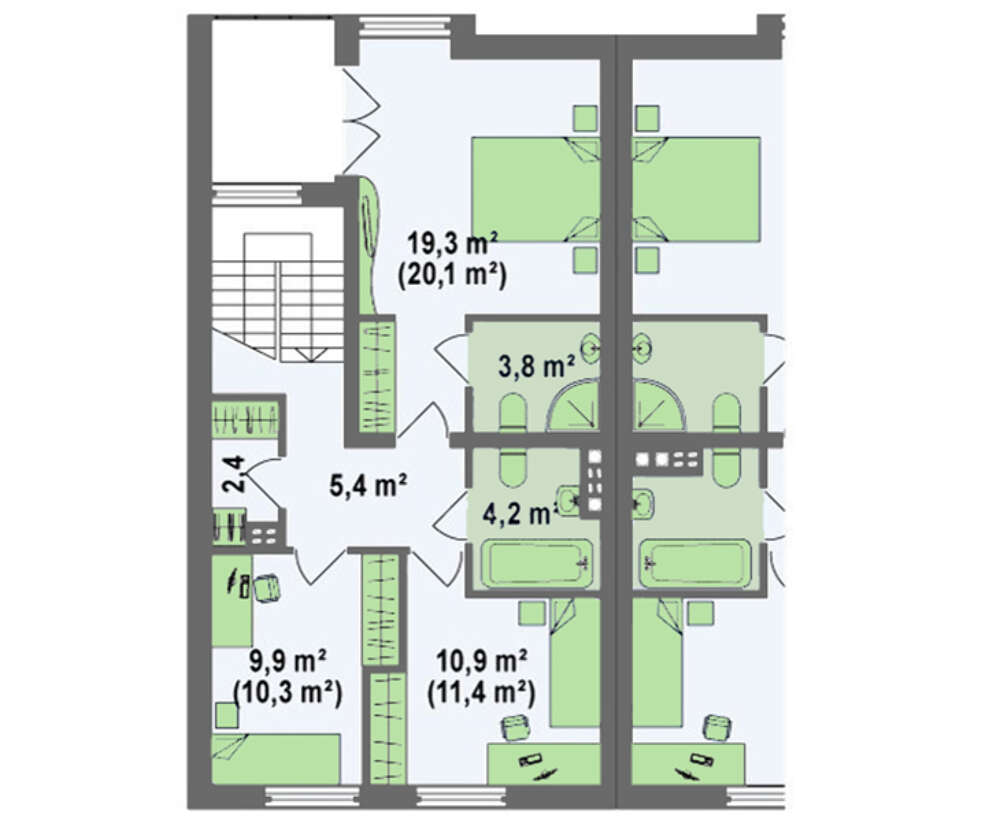• 4M562 Проект двухэтажного модернового коттеджа на 2-е семьи с раздельными входами