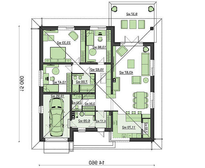 Стильный одноэтажный коттедж в духе немецкой современной архитектуры украсит любой загородный участок. Проект рассчитан как для дома круглогодичного проживания, так и для сезонной дачи. Такой коттедж заинтересует застройщика, предпочитающего рациональное и практичное жилье.