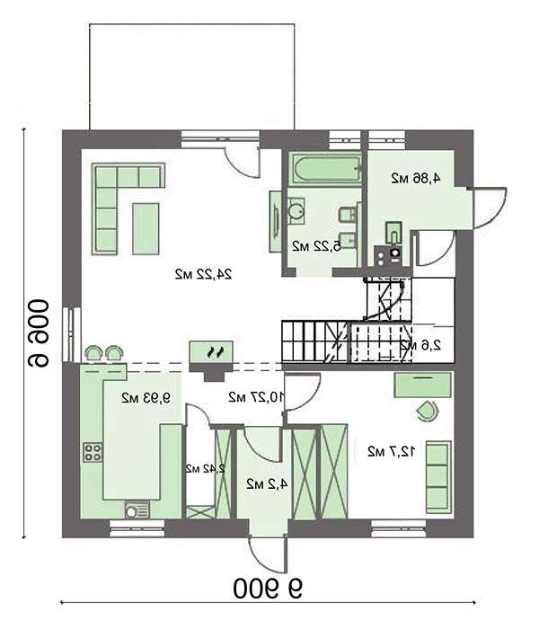 Современная вентиляционная система надежно защищает жилую зону от поползновения пищевых запахов. Назначение изолированной комнаты первого этажа выбирают сами хозяева. Ее можно меблировать как спальню и отдать одному из членов семьи, чаще всего выбор падает на старшее поколение, для которого неприемлемы высокие ступеньки лестницы.