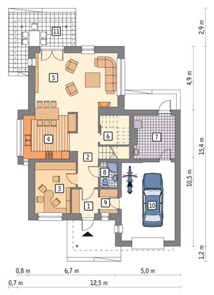 Проект стильного дома с большой террасой на втором этаже 4M6146