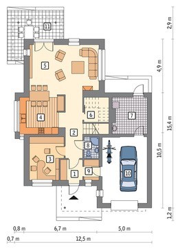 Проект содержит три раздела – АрхитектурныйКонструктивный и Инженерный: водоснабжение, отопление, вентиляция, канализация, электроснабжение (приобретается за дополнительную плату) + Пояснительная записка.