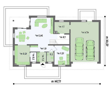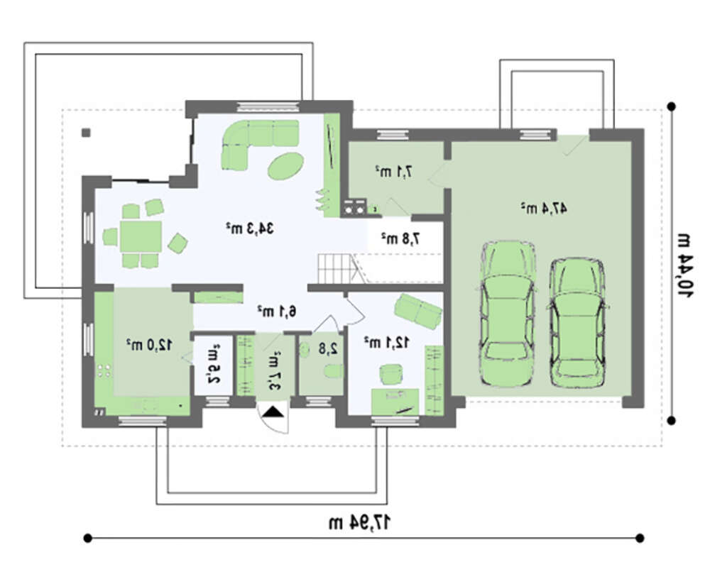 проект в зеркальном отображении позволит органично вписать дом в окружающий ландшафт.