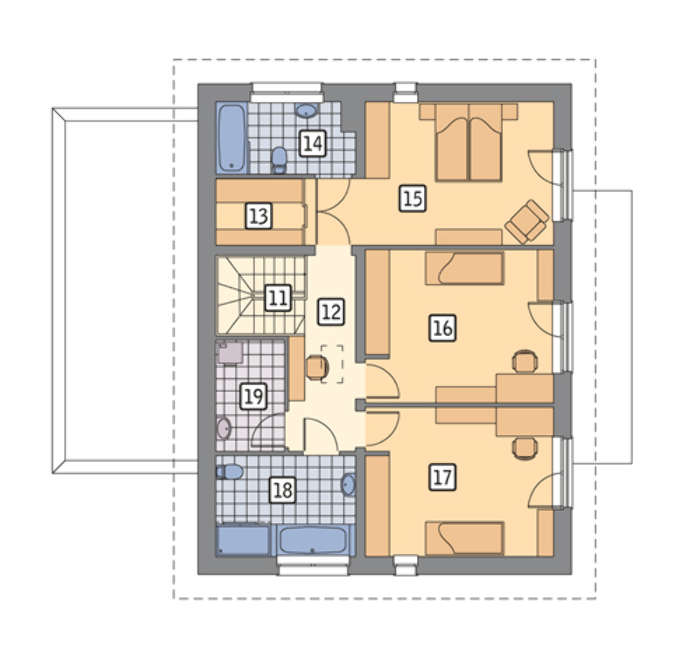 Проект содержит три раздела – Архитектурный, Конструктивный и Инженерный: водоснабжение, отопление, вентиляция, канализация, электроснабжение (приобретается за дополнительную плату) + Пояснительная записка.