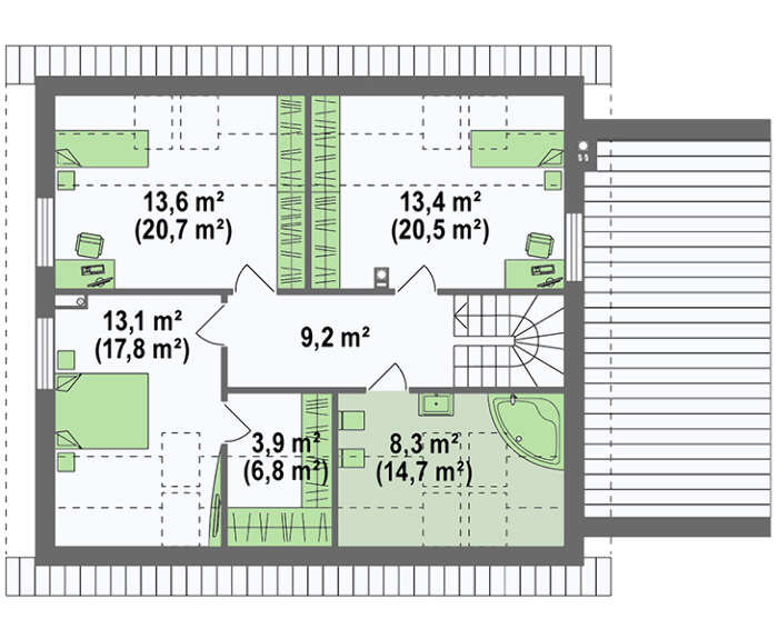 Проект стильного мансардного коттеджа площадью 206 кв.м. 4M7020