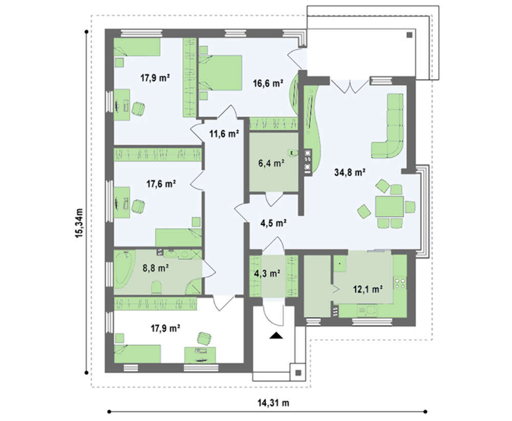 Проект стильного, просторного современного одноэтажного дома в России | Dom4m.ru | DOM4M.RU