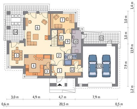 Архитектурный паспорт содержит самые общие сведения о проекте частного дома. Здесь вы не найдете подробных описаний. Вся более детальная информация дана в архитектурном и конструктивном разделах проекта. В паспорте же указаны только основные размеры и высоты. Также в нем отражены технико-экономические показатели будущего строения.