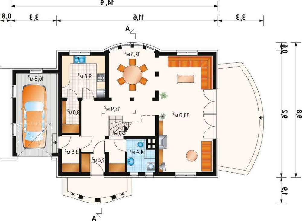 проект в зеркальном отображении позволит органично вписать дом в окружающий ландшафт.