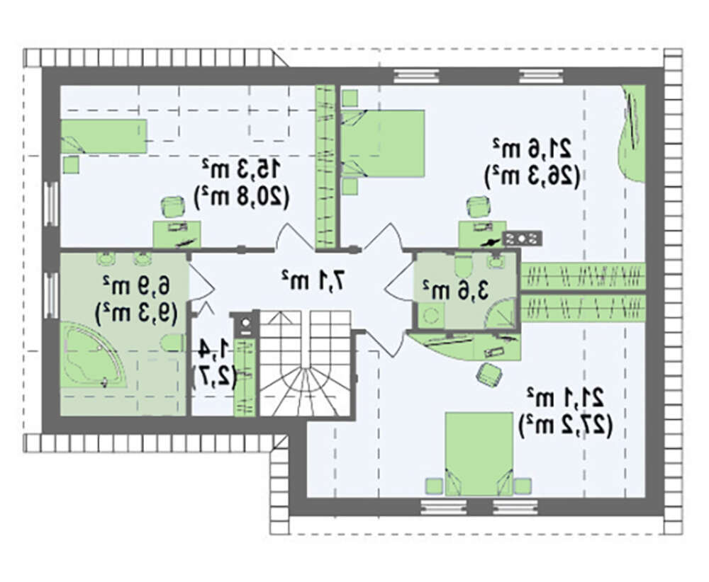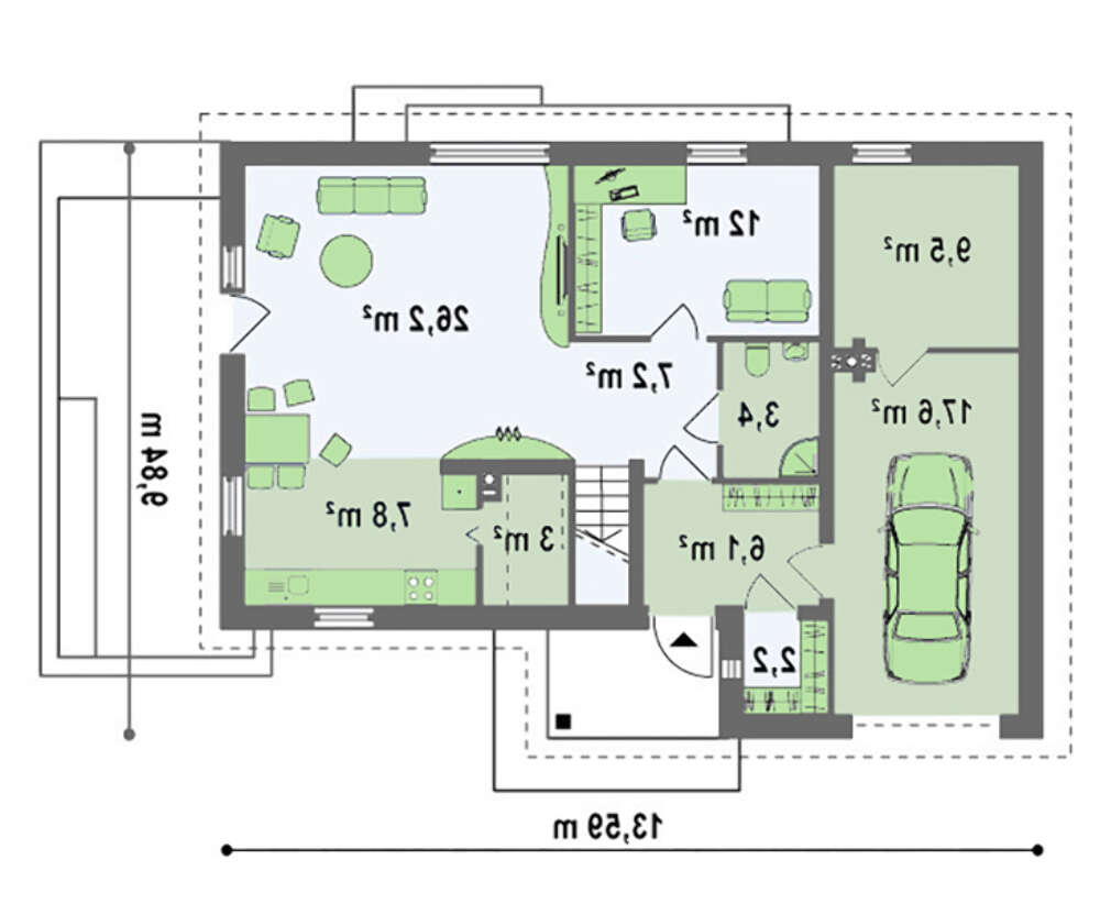 проект в зеркальном отображении позволит органично вписать дом в окружающий ландшафт.