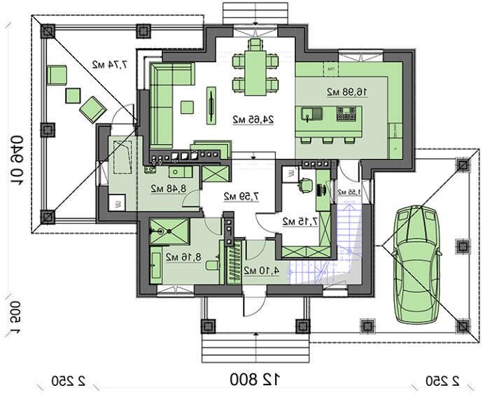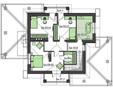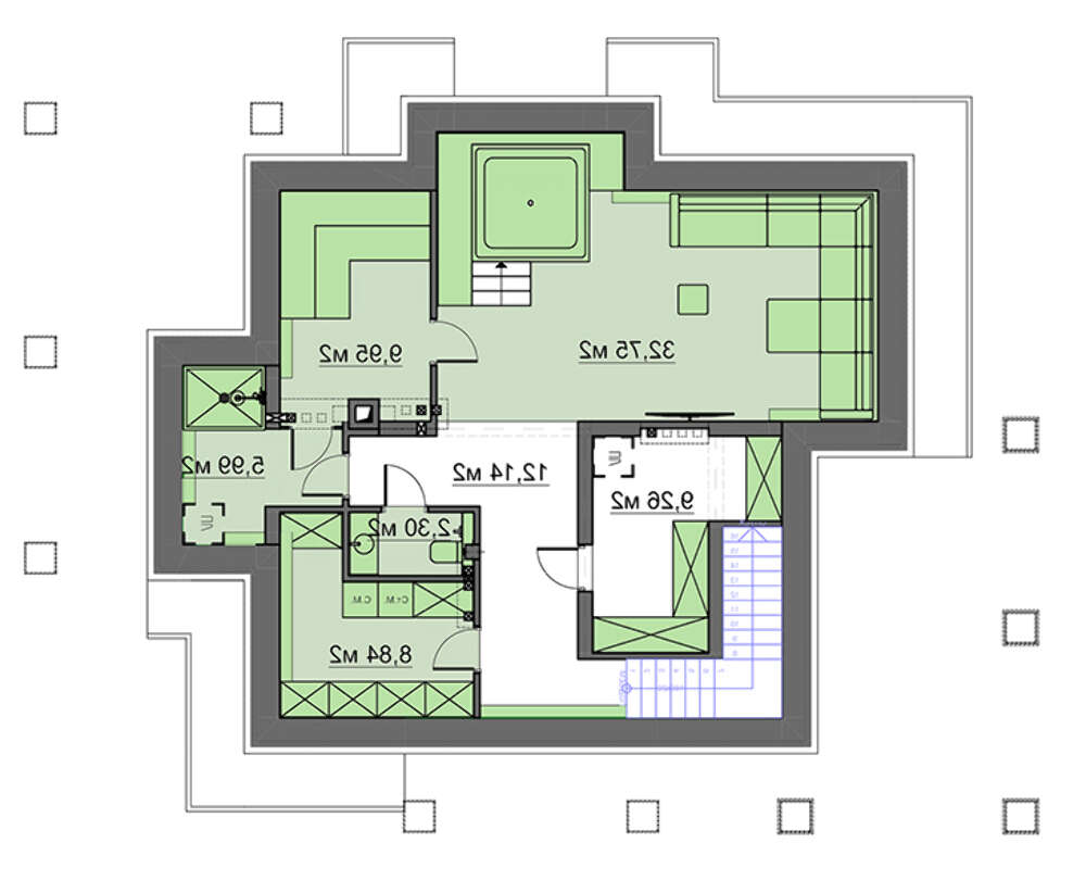 проект в зеркальном отображении позволит органично вписать дом в окружающий ландшафт.
